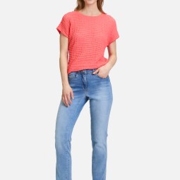 Strukturshirt mit U-Boot-Ausschnitt